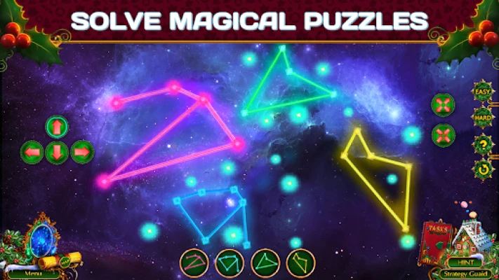 Challenge your logic and deduction skills by solving a number of intriguing festive puzzles, and playing bright and colorful mini-games! Search for the items hidden in beautifully drawn locations and earn cool achievements!