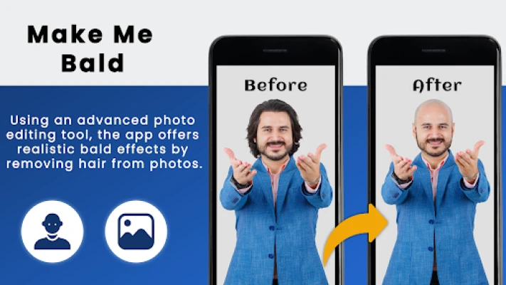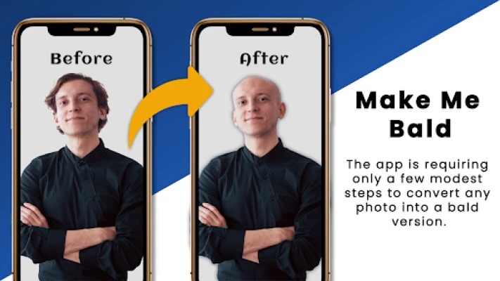 you'll definitely laugh at! Have a bald head without shaving through take a bald photo, you can even virtually shave your Head by using ai bald filter! If you would like to become bald by using ai photo editor, but you are not sure whether it would look good if you take a bald photo, don't worry so we are giving you this Bald Head app where you can make yourself bald with just one click!
