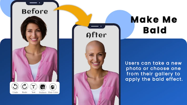 Make Me Bald Prank Editor is a funny photo editor with bald hairstyle stickers and bald effect